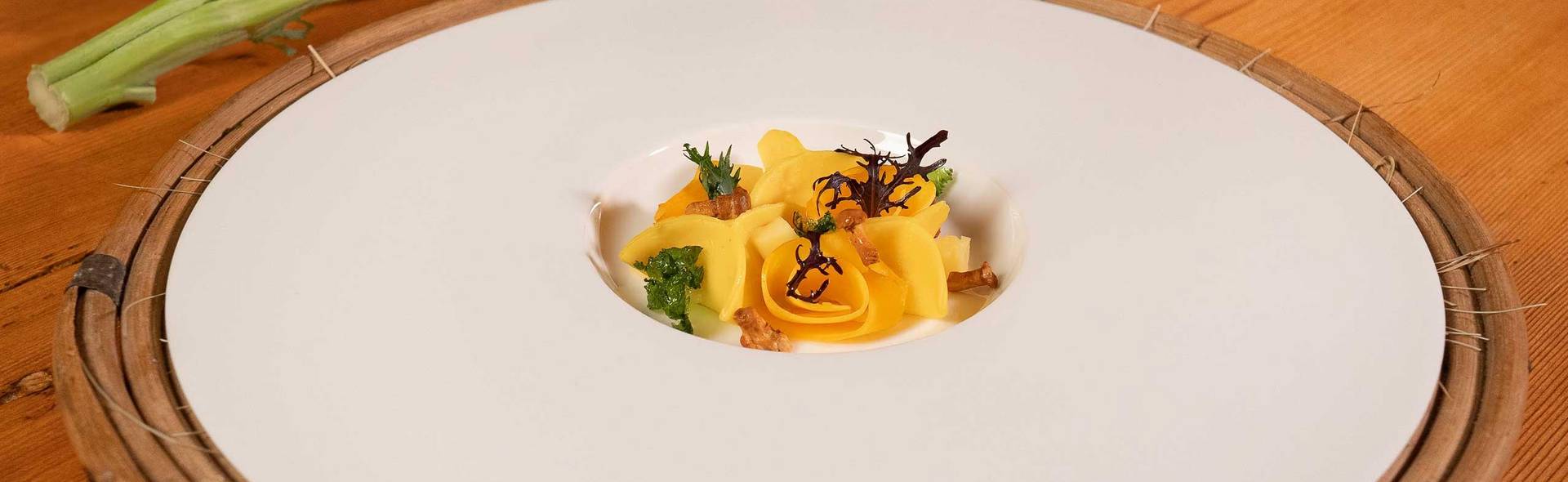 La filosofia dello chef gourmet Luis Haller è creare qualcosa di nuovo, inaspettato e grandioso utilizzando una selezione di ingredienti sani e genuini. Questa filosofia prende vita nella Luisl Stube, premiata con due cappelli nella Guida de l'Espresso e 16,5 punti (tre cappelli) da Gault&Millau, testimonianza della sua maestria. Per i suoi capolavori, Haller utilizza esclusivamente ingredienti a chilometro zero, come la carne di manzo Laugen locale, i pinoli di pino cembro e la verdura proveniente da campi di permacultura. Partendo da poche materie prime selezionate, Haller crea piccole opere d’arte uniche ed armoniose, trovando l’equilibrio perfetto tra cremosità e croccantezza, tra dolce e aspro. Ogni ingrediente possiede una propria personalità, ma uniti insieme creano un trionfo di sapori sublime e inattesi.